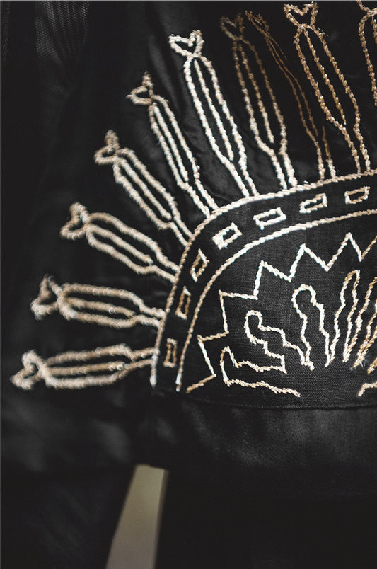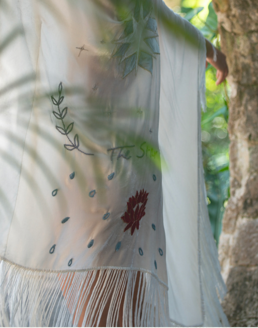 Hay un gran propósito en cada paso del proceso artesanal de creación, y atrás de cada símbolo bordado, convirtiéndose así cada prenda en un vehículo que transmite la esencia a quien lo usa.