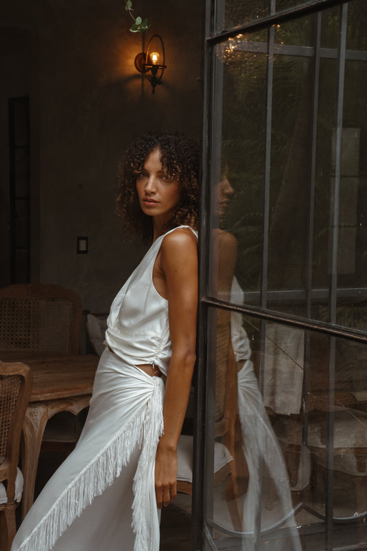 Falda Luz Seda Flecos